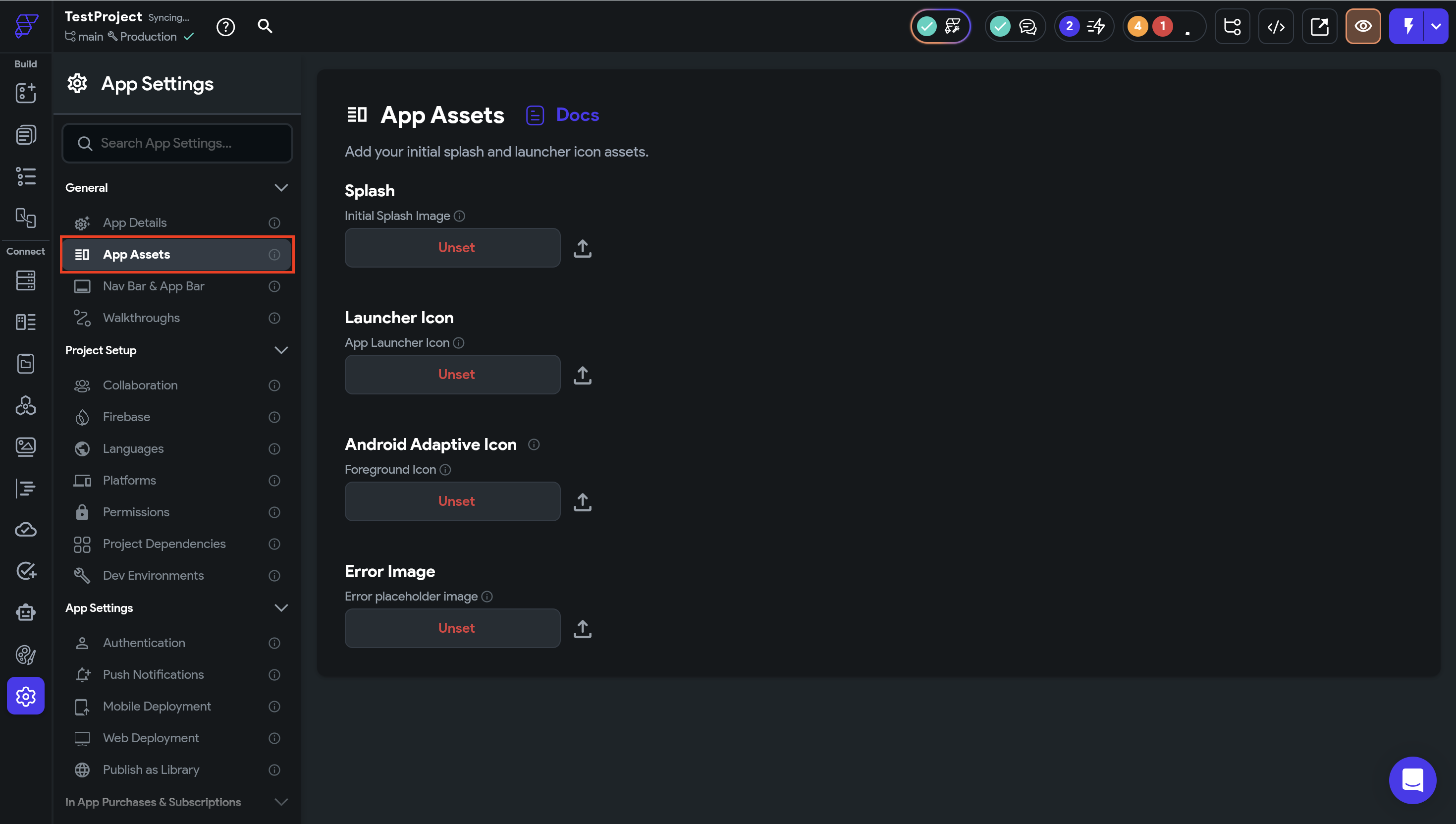 App AssetsはApp Settingsに存在します。